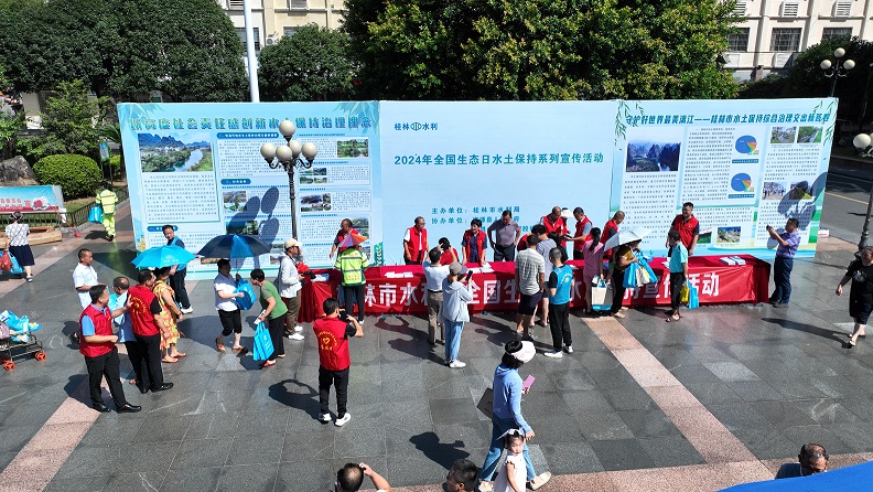 为了贯彻落实习近平生态文明思想,增强践行“绿水青山 就是金山银山”理念,提高全市水土保持意识。2024年8月24日,桂林市水利局组织开展全国生态日水土保持宣传活动。