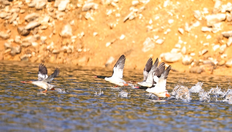 工程完工后,灵川县推行的库区“四方两股一体化管护”模式同步落地见效,水库水质持续优化提升,周边湿地生态得到自然修复,形成了水质清澈、鱼类丰富、生境稳定的优质生态环境。作为对水环境极为挑剔的“生态指示种”,中华秋沙鸭的集群栖居,正是水库生态向好的有力证明,更是漓江上游生态屏障稳固的生动缩影。
