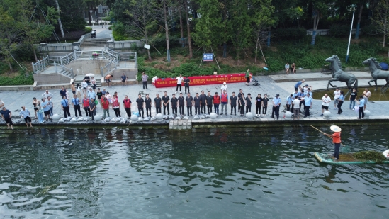 8月15日上午,桂林市七星区漓管局与桂林市中级法院、七星区法院、桂林市检察系统、市农业农村局、区生态环境局、区住建局共同在解放桥下的六匹马码头开展了“增殖放生+普法宣传”活动,共同迎接首个“全国生态日”。