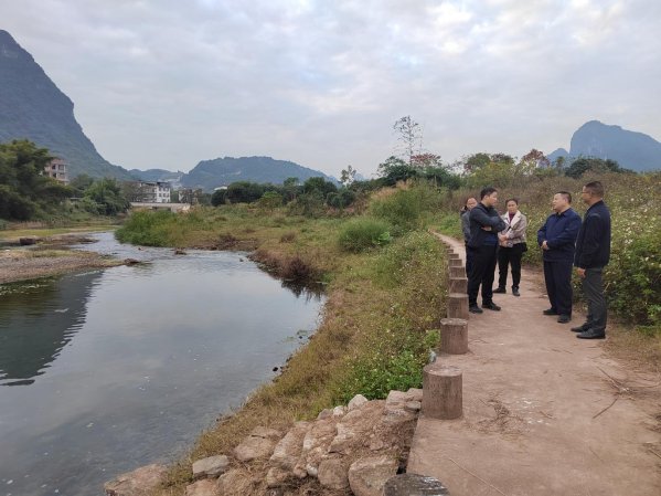 近日,阳朔县委副书记秦太平到遇龙河白沙镇白岩村段开展巡河工作。