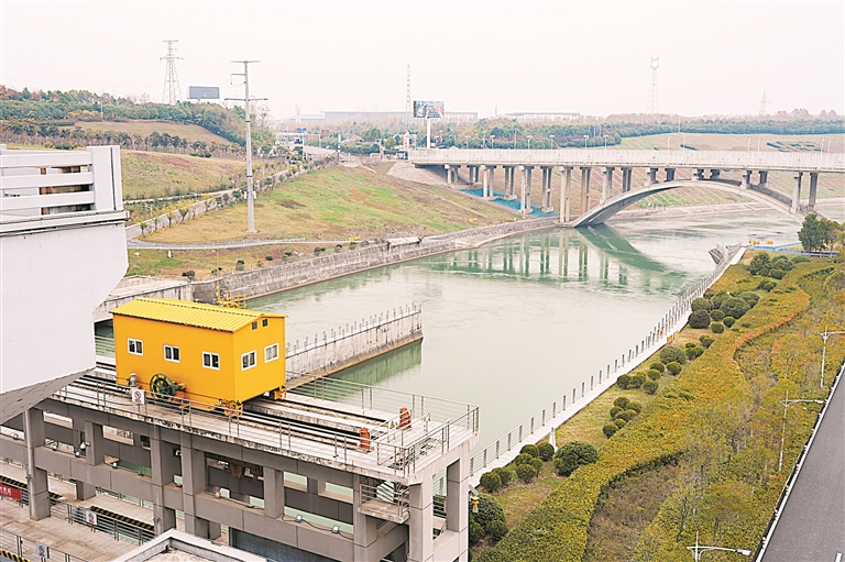 陶岔渠首枢纽工程位于河南省淅川县九重镇陶岔村,作为南水北调中线输水总干渠的引水渠首,担负着向河南、河北、北京、天津输水的重要任务。图为南水穿过陶岔渠首枢纽工程北上。瞿芃 摄