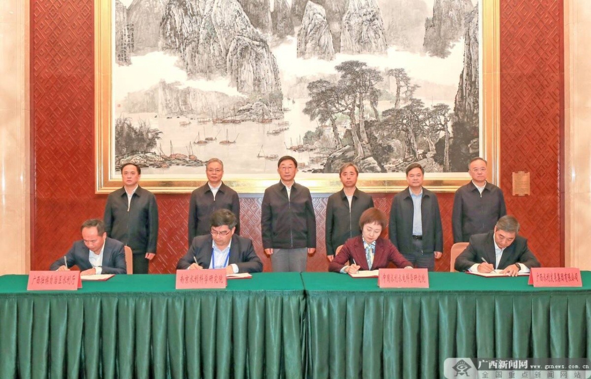 自治区水利厅与南京水利科学研究院、广西水利发展集团与中国水利水电科学研究院分别签署了科技合作框架协议。记者 何学俏 摄
